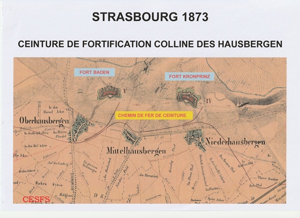 21/08/1874 : Note du 2e bureau français sur les nouveaux forts de Strasbourg : « Les nouveaux travaux exécutés par les Allemands à Strasbourg comprennent 12 forts, 3 sur la rive droite du Rhin, 9 sur la rive gauche. Les forts de la rive droite sont à peine commencés, ceux de la rive gauche au contraire sont terminés sauf toutefois ceux dont les dossés sont pleins d’eau ».